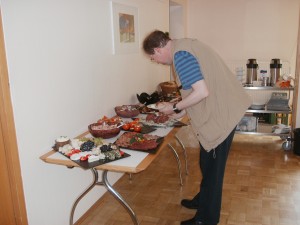 Das Buffet wurde von unserem Schlachter des Vertrauens zusammengestellt, hatte neben einer Schlachteplatte, auch ein Käse/- und Fischplatte, 3 Salate, gefüllte Tomaten sowie reichlich Brötchen und Brot zu bieten, alles auch für Stomaträger geeignet.